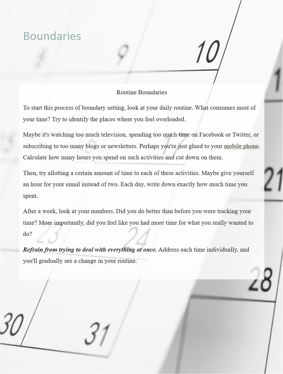 A New Routine, Creating New Habits, Motivation, Boundaries, Personal Boundaries, and Time Management.