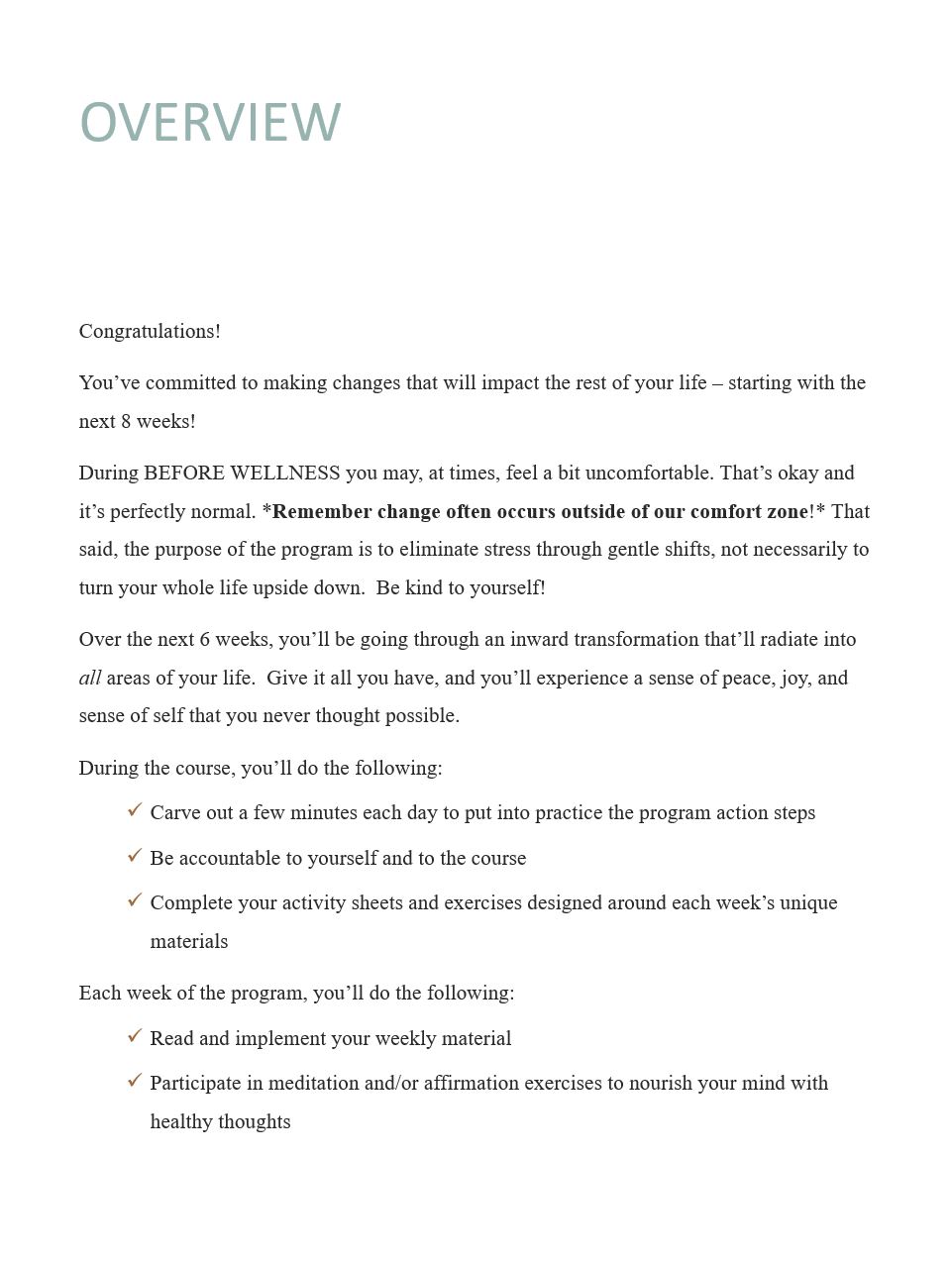 Before Wellness is the ultimate – grab life by the horns – online implementation program.