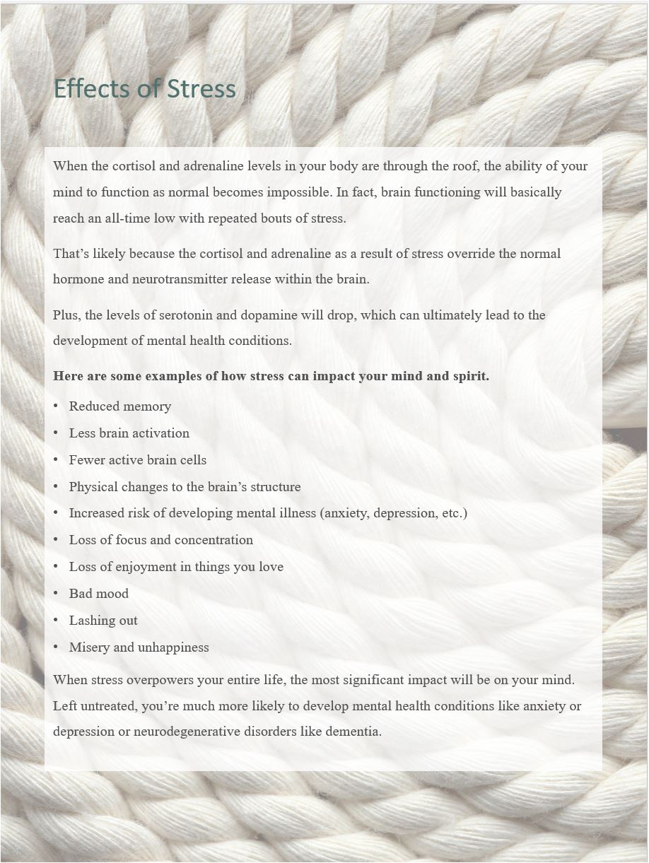 Effects of Stress, 7 Relaxation Techniques, Becoming Grounded, A Calm Home, Instant Calm